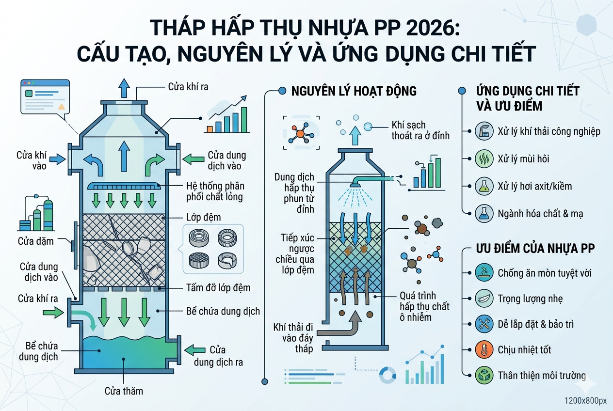 Trong bối cảnh các ngành công nghiệp hóa chất, mạ điện, bán dẫn, dược phẩm và xử lý nước thải ngày càng đặt ra yêu cầu khắt khe hơn về độ bền vật liệu, tính toàn vẹn hệ thống (system integrity) và chi phí vòng đời (Life Cycle Cost — LCC), ống nhựa Polypropylene (PP) đã và đang khẳng định vị thế vật liệu đường ống chiến lược trong hệ thống dẫn hóa chất kín.
