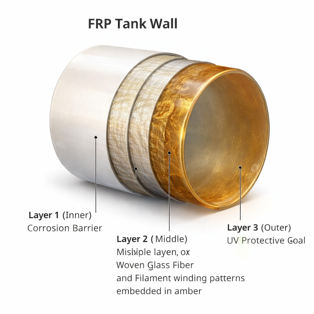 Cấu trúc bể FRP điển hình (từ trong ra ngoài):