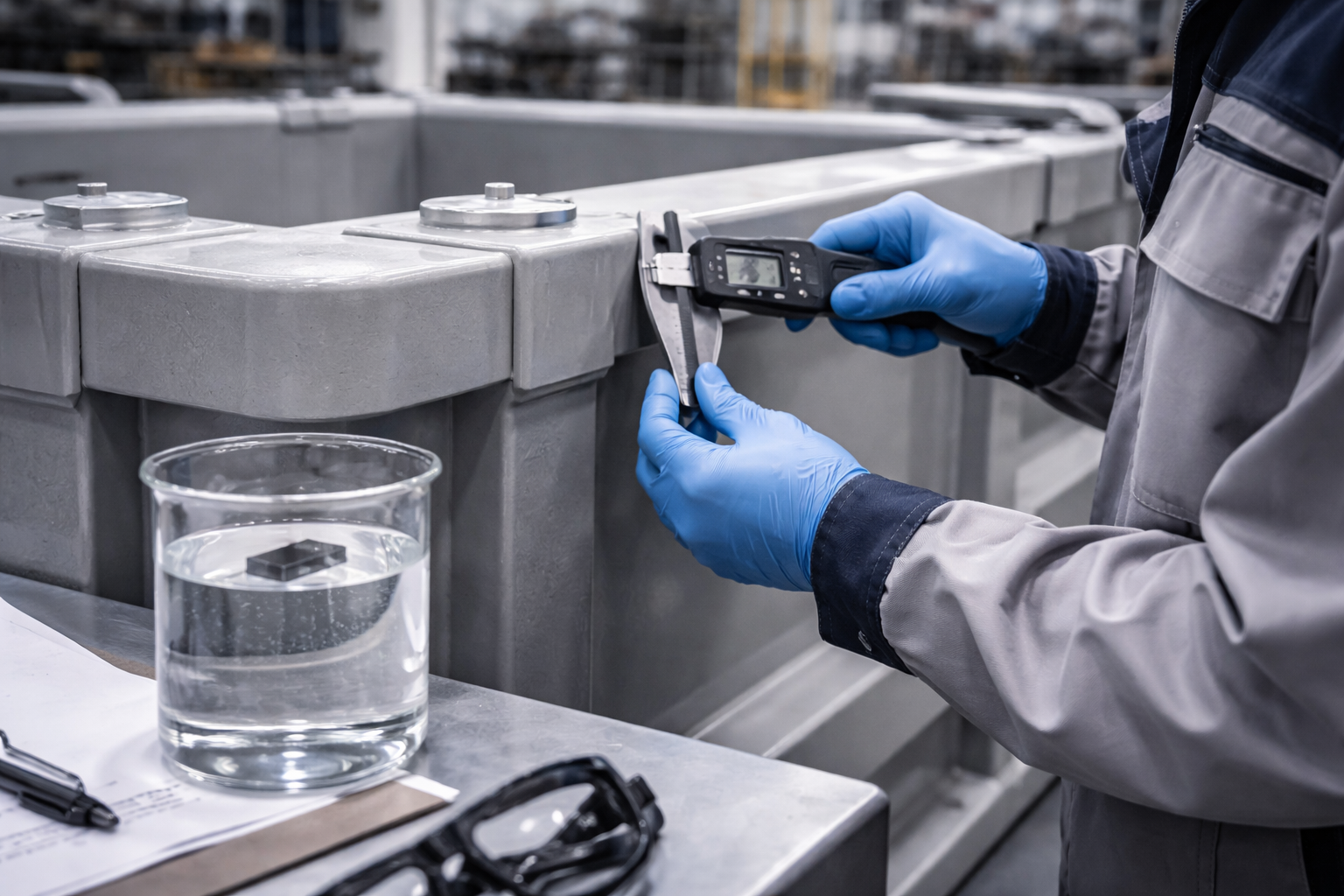 Dụng cụ: Thước kẹp điện tử hoặc máy đo siêu âm (ultrasonic thickness gauge — có thể đo xuyên thành bồn đã lắp).