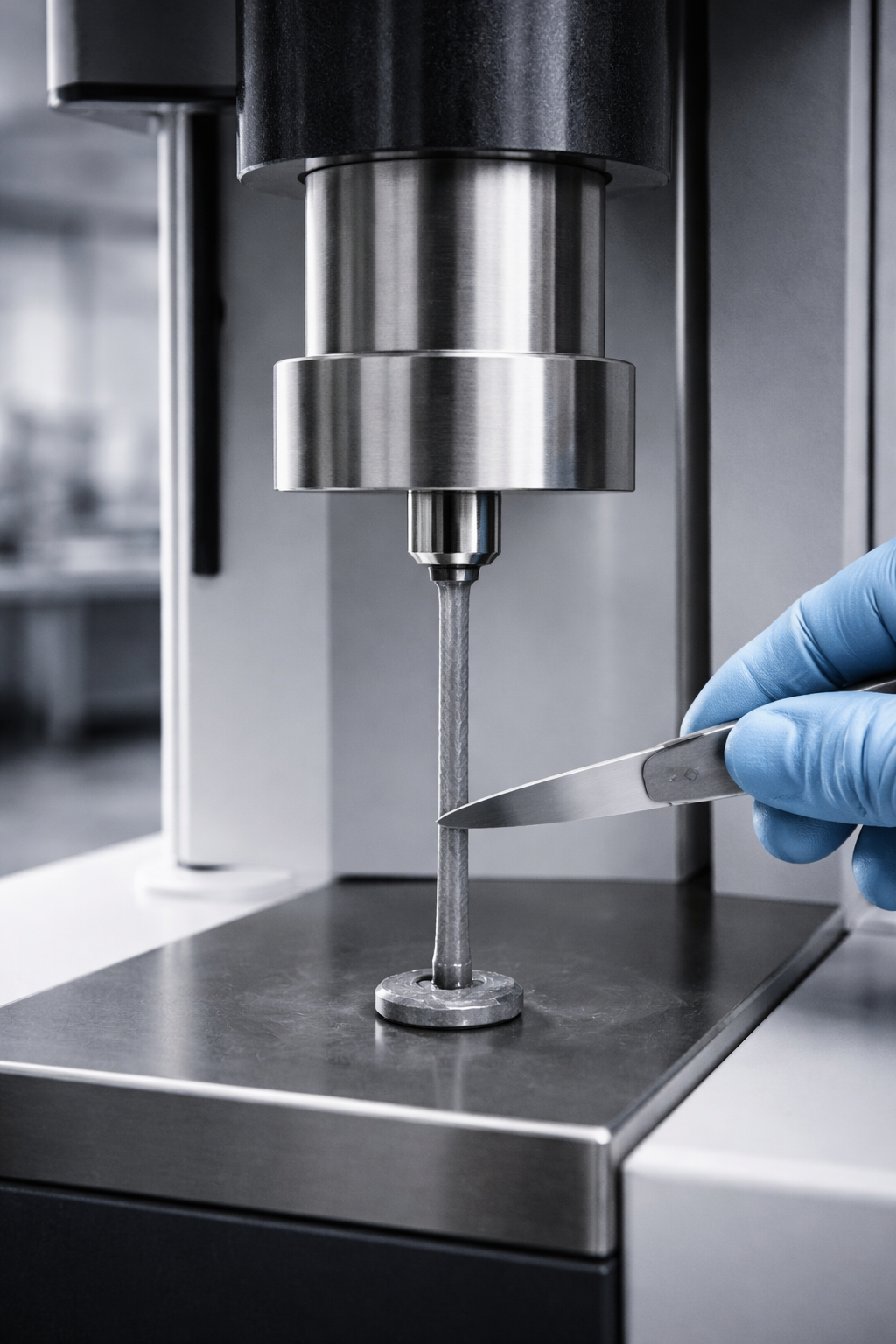 Cắt mẫu từ tấm PP theo ISO 527 Type 1B → kéo đứt trên máy thử kéo: