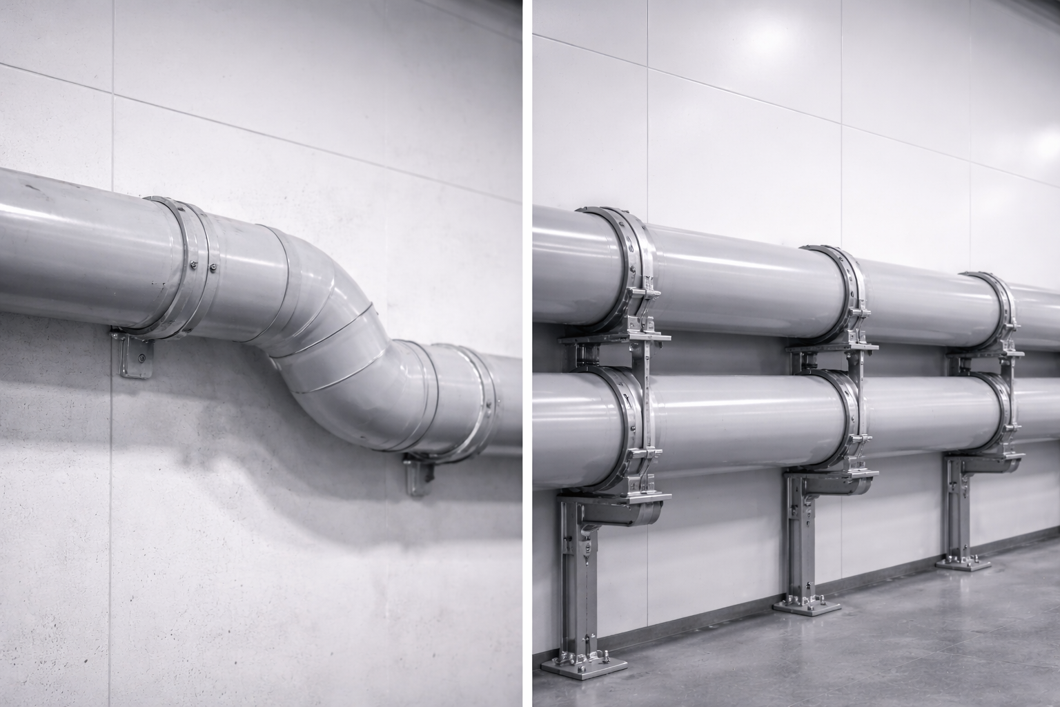 Giải pháp: Luôn dùng gối đỡ PP-lined saddle, gối đỡ PP-H hoặc tấm lót UHMWPE giữa kim loại và ống PP.