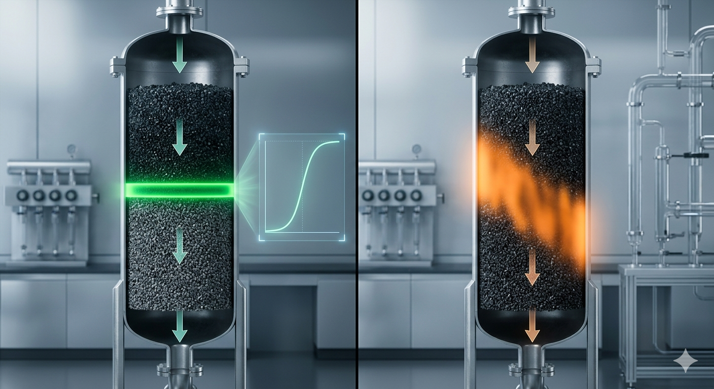 MTZ rộng (L_MTZ / L_bed > 0,4) là chỉ dấu đầu tiên của tháp hấp phụ kém hiệu quả — phản ánh hiệu suất truyền khối thấp do nhiều nguyên nhân cần chẩn đoán.