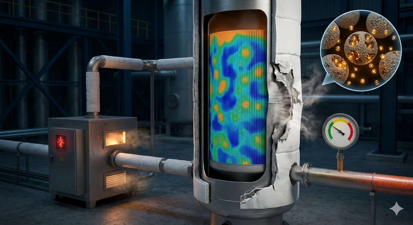 - Bed temperature array (ít nhất 3 điểm dọc trục và 2–3 điểm trên bán kính) → phát hiện sớm kênh dòng và bất đối xứng nhiệt