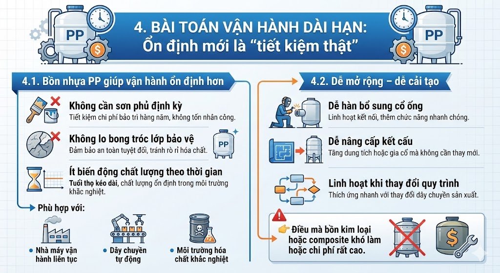➡️ Bồn nhựa PP không phải rẻ nhất, nhưng ổn định và dễ dự đoán chi phí nhất.