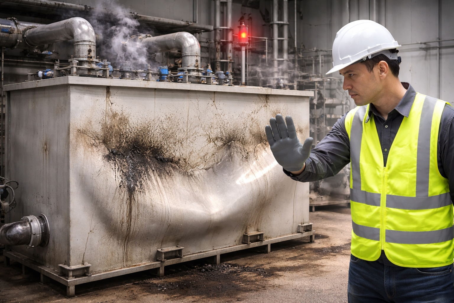 Lưu ý an toàn nghiêm trọng: Rò rỉ bể chứa dung môi hữu cơ do chọn sai vật liệu có thể gây cháy nổ, ngộ độc hơi dung môi và ô nhiễm môi trường nghiêm trọng. Đây là nguyên nhân gây ra nhiều vụ tai nạn công nghiệp hóa chất tại Việt Nam trong những năm qua.