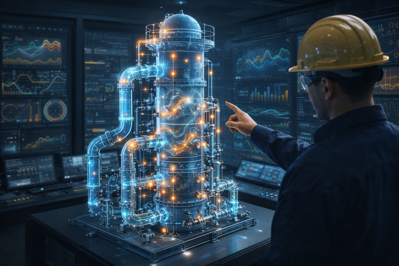 Xây dựng mô hình Digital Twin của tháp hấp thụ PP dựa trên dữ liệu thực đo giúp mô phỏng, dự báo và tối ưu hóa các thông số vận hành mà không cần dừng máy thử nghiệm — giảm rủi ro và tiết kiệm chi phí tối ưu hóa đáng kể.