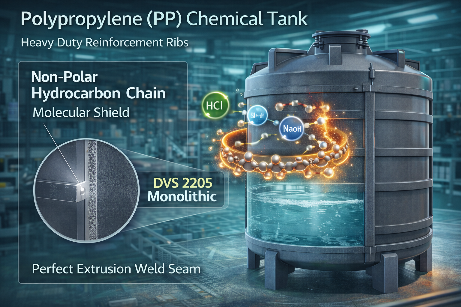 Điều này đặc biệt quan trọng trong bể chứa dung dịch FeCl₃ đặc (dùng trong in mạch điện tử), dung dịch mạ axit (axit sulfuric + niken sulfat), hay NaOH đặc nóng — các môi trường phá hủy nhanh bất kỳ vật liệu kim loại nào nhưng hoàn toàn không ảnh hưởng đến PP ở điều kiện vận hành bình thường.