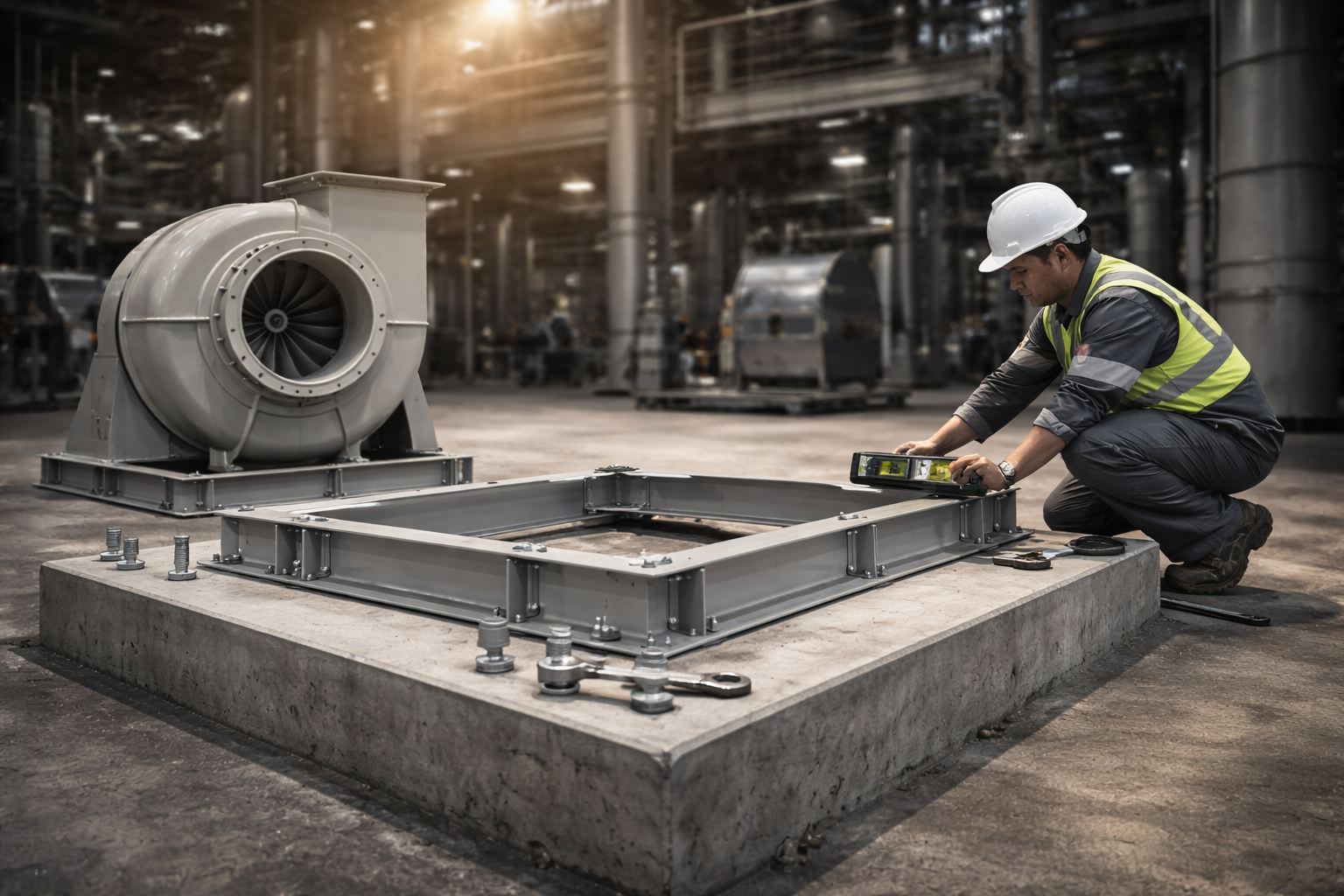 - Bề mặt bệ phải đạt độ phẳng ≤ 0,3mm/300mm (đo bằng thước thẳng + lá căn) — nền phẳng là điều kiện tiên quyết để lắp đặt anti-vibration mount đúng cách