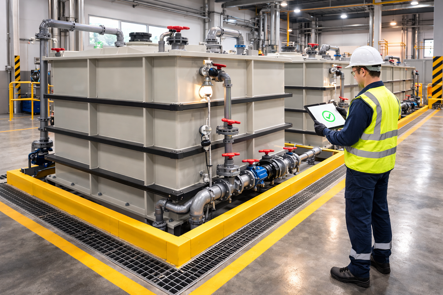 Tổng hợp toàn diện các tiêu chuẩn an toàn bắt buộc và khuyến nghị khi thiết kế, lắp đặt, vận hành và kiểm tra bể nhựa PP chứa hóa chất công nghiệp — từ quy chuẩn kỹ thuật DVS 2205, TCVN đến quy định pháp lý Việt Nam hiện hành về quản lý hóa chất và an toàn lao động.