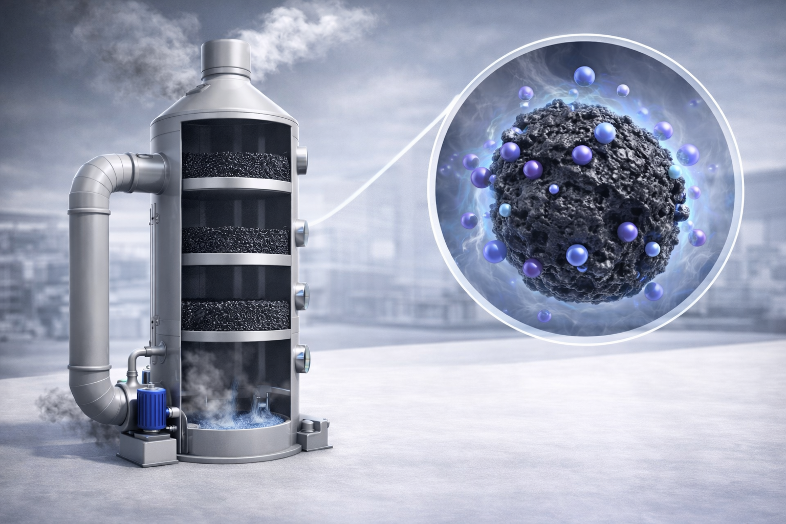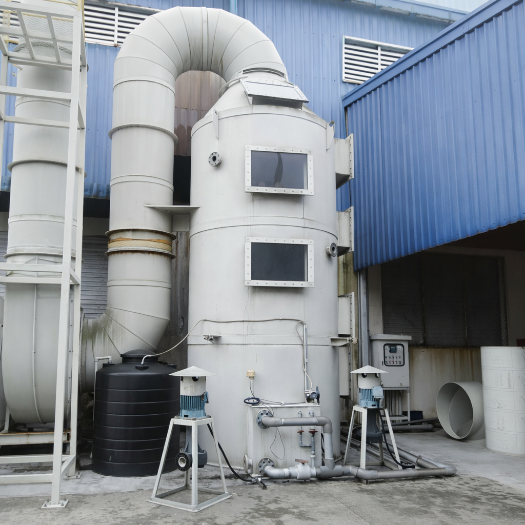 ✔ Ví dụ điển hình: Tháp NaOH 2 tầng + tháp H₂SO₄ 1 tầng xử lý đồng thời H₂S + NH₃ + mercaptan từ trạm xử lý nước thải đô thị — đây là ứng dụng kinh điển không thể thay thế bằng hấp phụ.