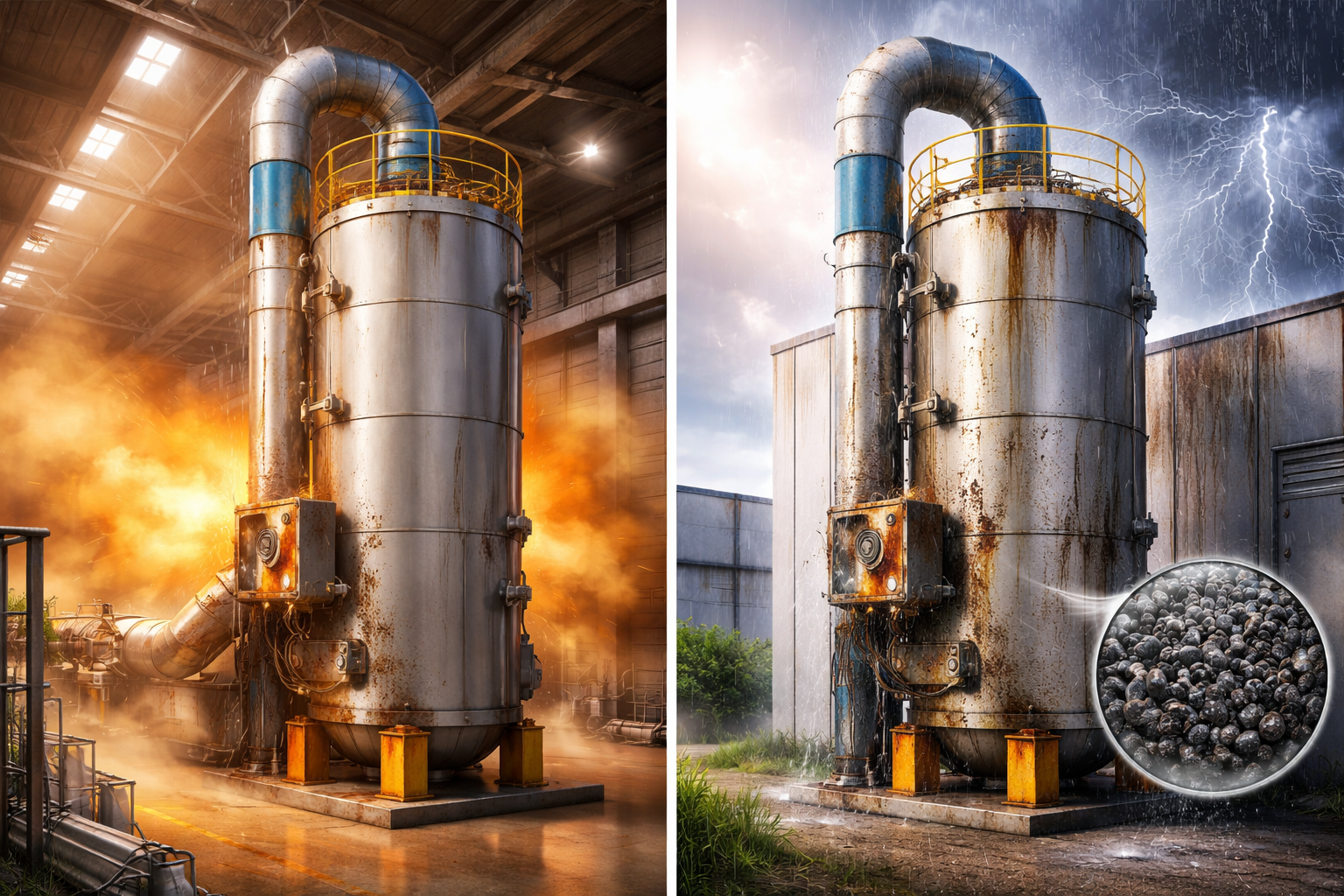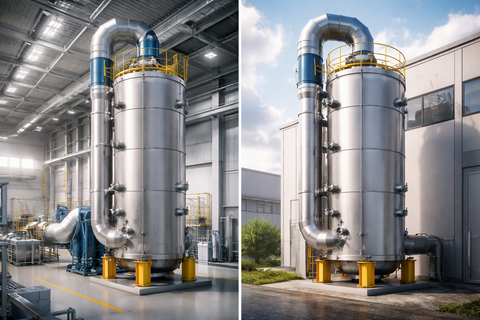 Vị trí lắp đặt tháp hấp phụ (adsorption tower) – trong nhà hay ngoài trời – là quyết định thiết kế thường bị đưa ra quá sớm, quá đơn giản và thiếu phân tích kỹ thuật đúng mức. Thực tế vận hành cho thấy: tháp hấp phụ đặt sai vị trí có thể mất 30–60% tuổi thọ vật liệu hấp phụ, tốn thêm 20–40% chi phí vận hành và tăng rủi ro vi phạm quy chuẩn khí thải. Câu trả lời không đơn giản là “trong nhà tốt hơn” hay “ngoài trời tiết kiệm hơn” – mà là một bài toán tối ưu hóa đa biến phụ thuộc vào loại khí thải, loại vật liệu hấp phụ, điều kiện khí hậu địa phương, yêu cầu an toàn và ngân sách toàn vòng đời. Bài viết này cung cấp khung phân tích kỹ thuật toàn diện để đưa ra quyết định đúng đắn.