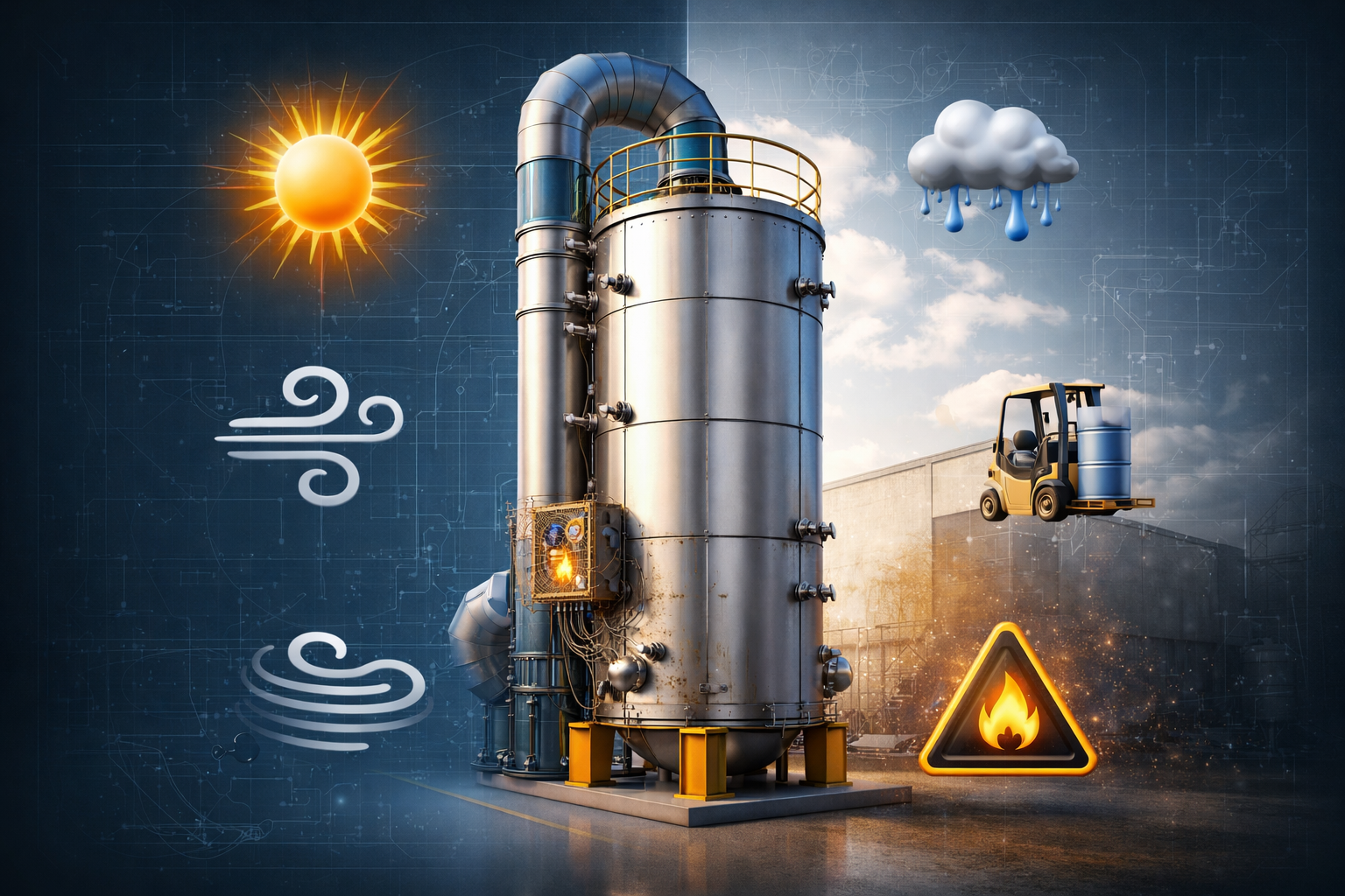 Yêu cầu an toàn cháy nổ và PCCC là yếu tố quyết định không thể thỏa hiệp trong lựa chọn vị trí tháp hấp phụ xử lý khí có tính chất cháy nổ.