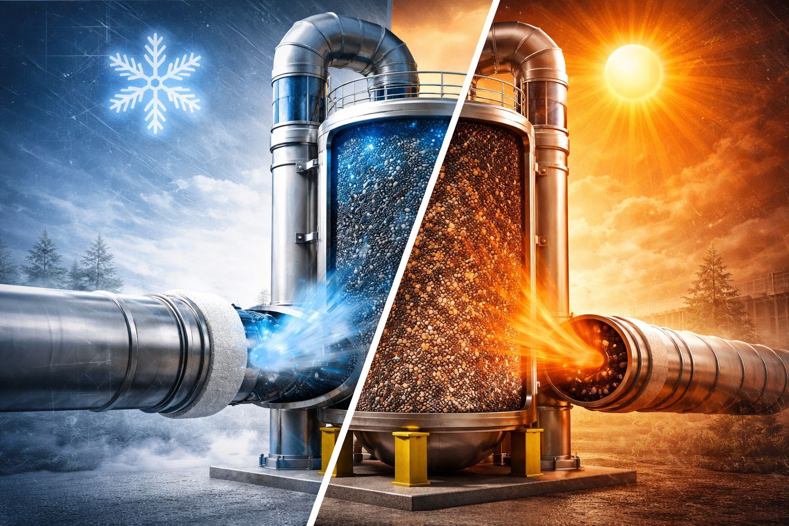 ❌ Biến động nhiệt độ lớn ảnh hưởng hiệu suất: nhiệt độ mùa hè >40°C làm giảm dung lượng hấp phụ 30–50%; hiệu suất dao động theo mùa khó kiểm soát
