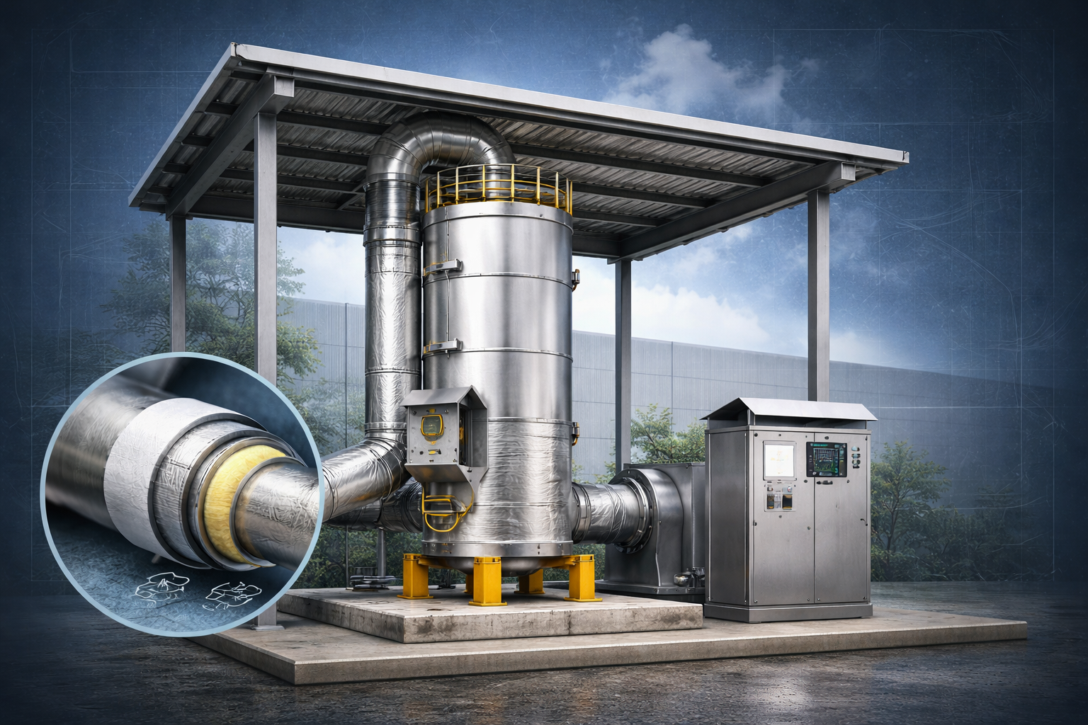 💡 Giải pháp kỹ thuật: bọc cách nhiệt (thermal insulation) đường ống dẫn khí ngoài trời tối thiểu 50 mm mineral wool hoặc PU foam + vỏ nhôm giảm đáng kể biến động nhiệt độ khí đầu vào tháp; đây là đầu tư nhỏ nhưng mang lại lợi ích lớn cho tháp đặt ngoài trời.