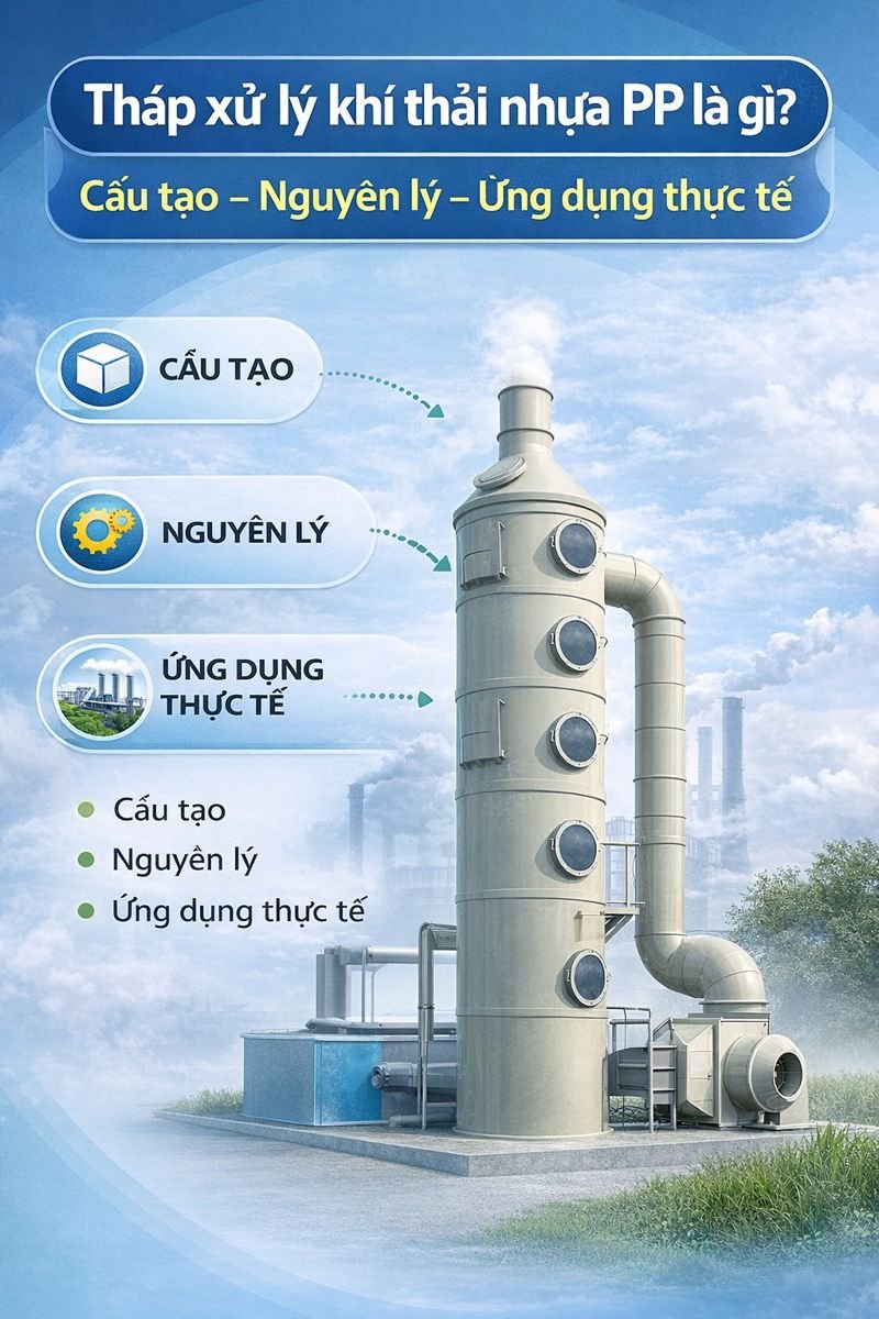 Trong số các vật liệu chế tạo, tháp xử lý khí thải nhựa PP đang được nhiều doanh nghiệp lựa chọn nhờ khả năng chống ăn mòn hóa chất, độ bền cao và chi phí hợp lý.