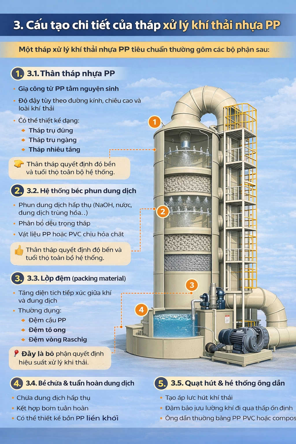 3. Cấu tạo chi tiết của tháp xử lý khí thải nhựa PP