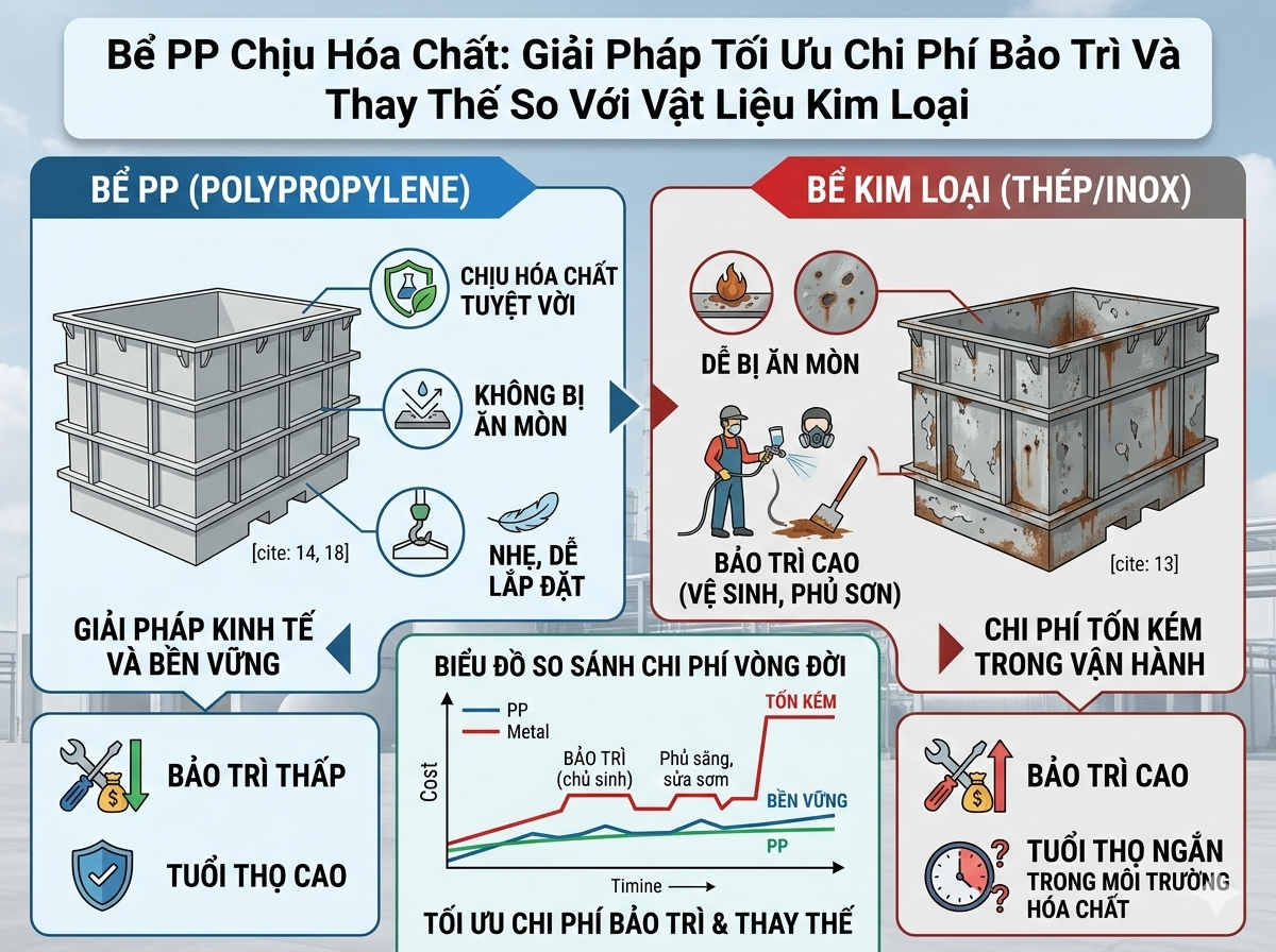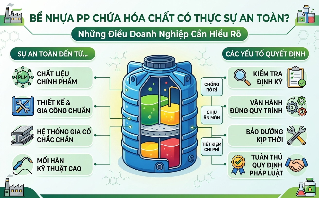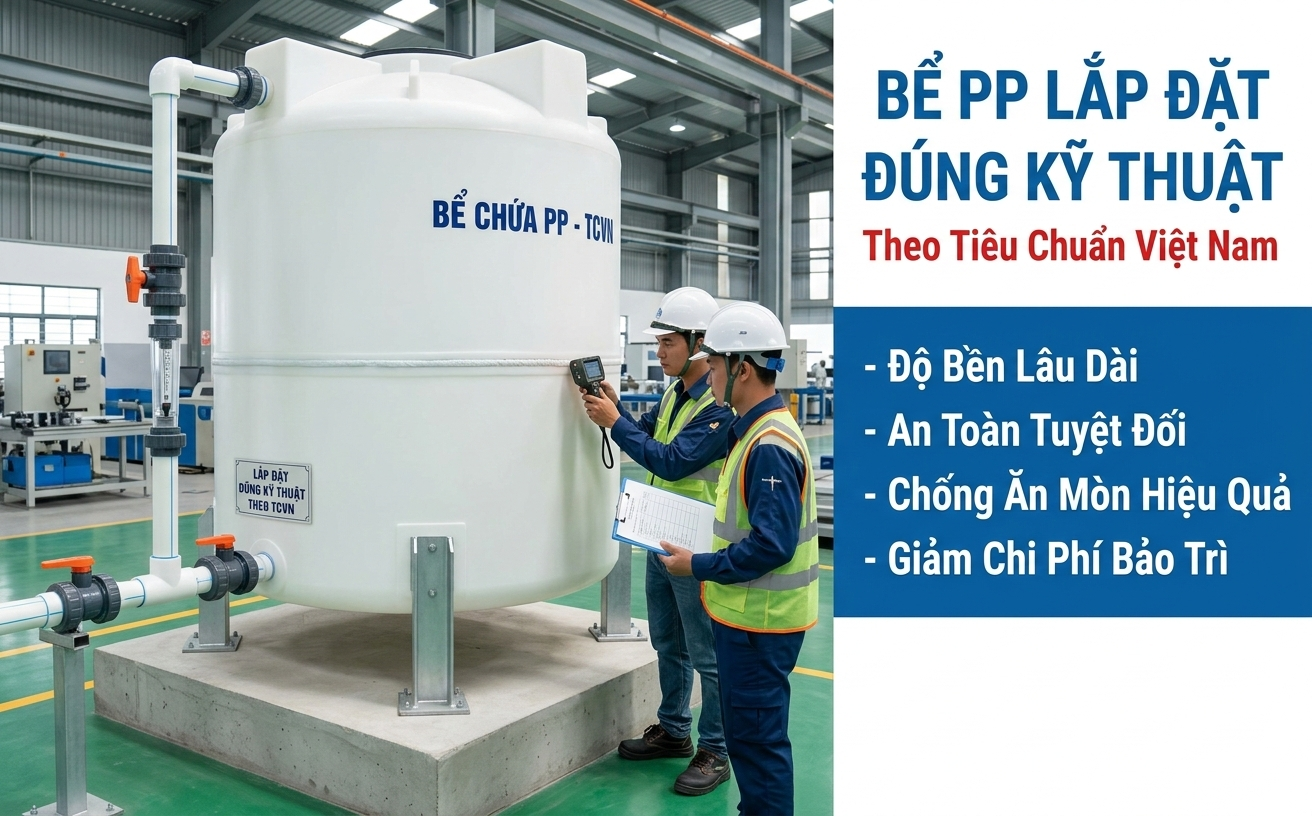 Trong nhiều nhà máy công nghiệp, bể nhựa PP (Polypropylene) được lựa chọn để lưu ...