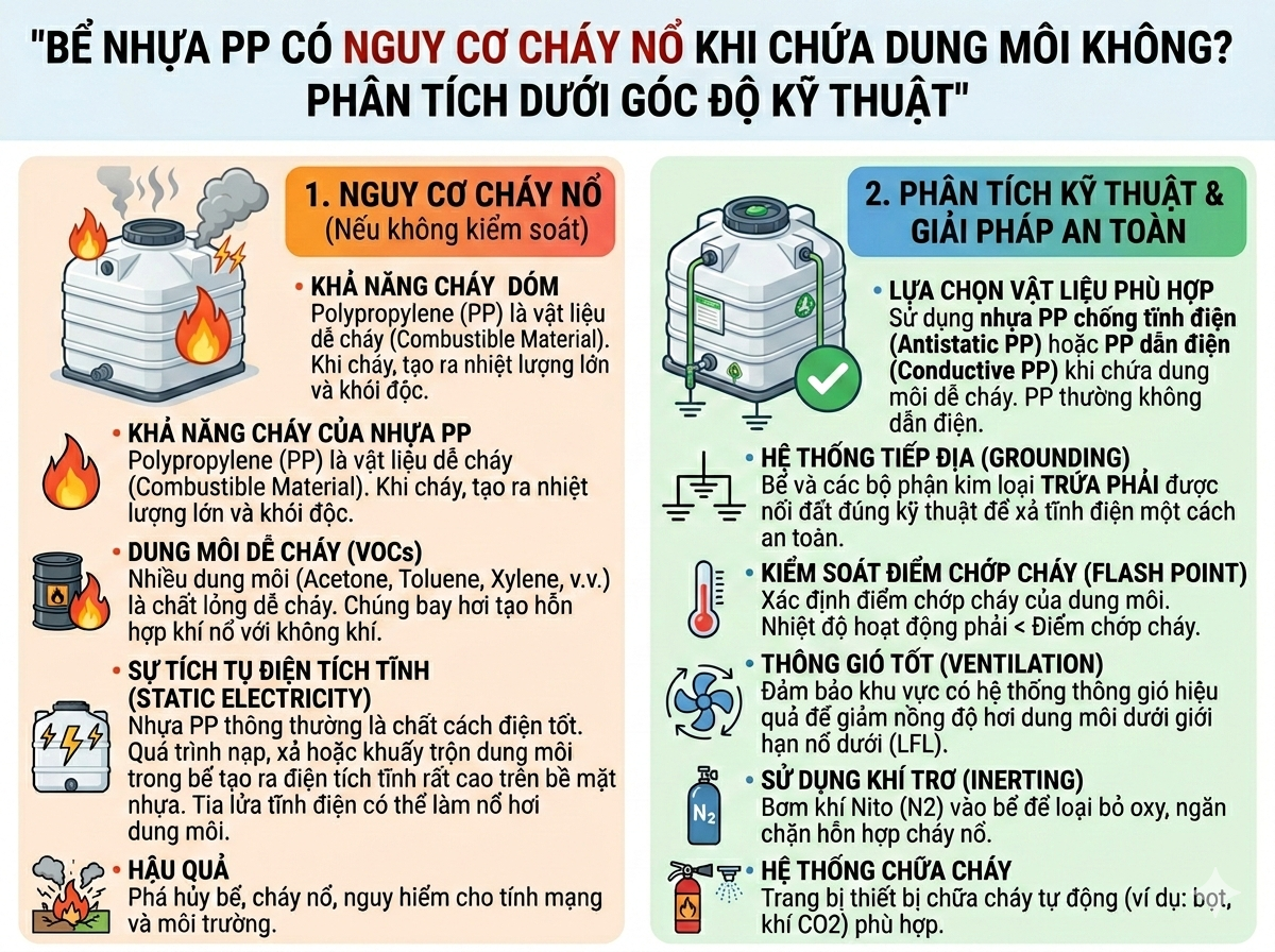 Bể nhựa PP (Polypropylene) được ứng dụng rộng rãi trong ngành hóa chất, xi mạ, ...