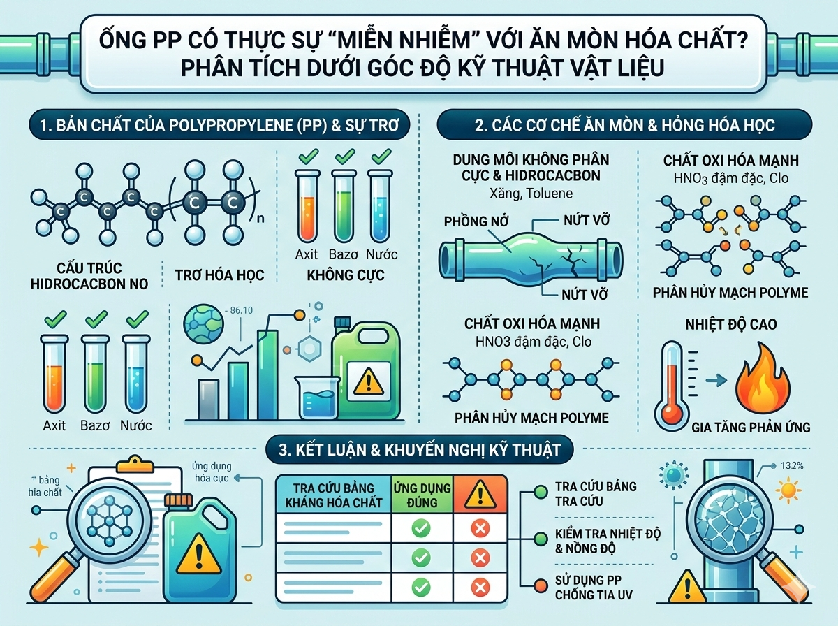 Trong ngành xử lý hóa chất và môi trường, ống nhựa PP (Polypropylene) thường được ...