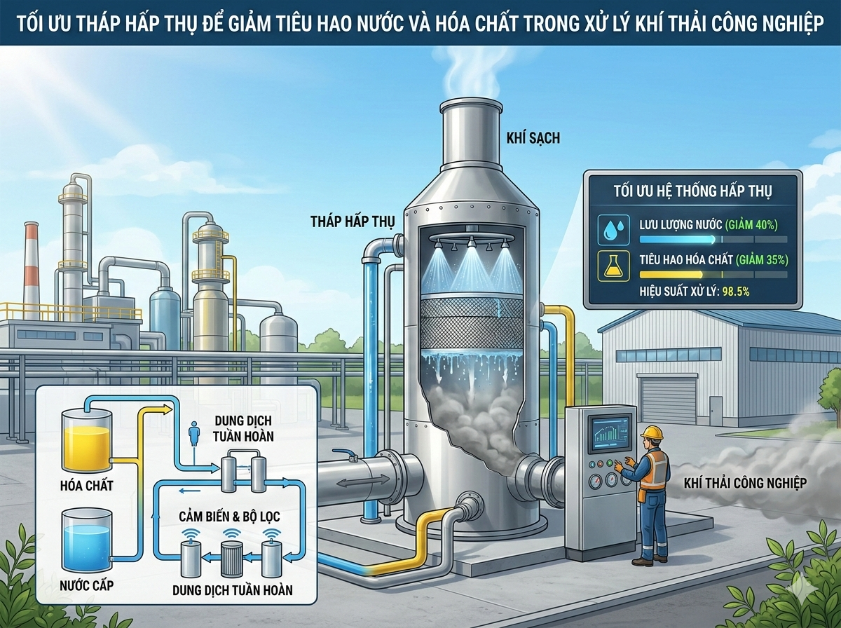 Trong các hệ thống xử lý khí thải công nghiệp, tháp hấp thụ (scrubber) thường ...